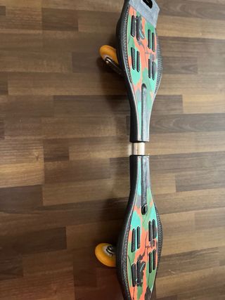 Patín tipo waveboard con diseño de camuflaje. - Diseño de camuflaje en naranja, verde y negro. - Ruedas giratorias para mayor maniobrabilidad. - Plataformas antideslizantes.