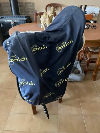 Silla de montar Zaldi Royal con asiento profundo y gel para mayor comodidad. talla 17.5 silla completa con sudadero, salva cruz, estribos y cincha. no regateos ni cambios - Diseño elegante en color negro. - Acolchado de gel. - Costuras decorativas.