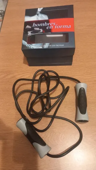 Comba de alta resistencia, ideal para entrenamientos de CrossFit, gimnasia o yoga. Incluye un libro complementario. - Diseño ergonómico de las empuñaduras. - Cable negro duradero. - Libro Hombres en Forma con 128 páginas.