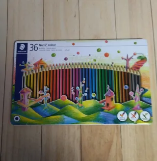 Caja metálica con 36 lápices de colores Staedtler Noris. - 36 lápices de colores. - Marca: Staedtler. - Modelo: Noris colour. - Caja metálica. - Fabricado en Alemania.