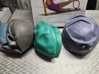 Vendo material de pilates prácticamente nuevo con muy poco uso incluso como ves hay aros y pelotas sin usar entre ellos: 6 fitball crivit varios colores 6 tacos yoga 9 aros pilates 20 softball varios tamaños 6 colchonetas tamaño de 75 x 170cm 2 colchonetas tamaño 60 x 180cm 8 Cojines de equilibrio Vendo todo junto con buena oferta