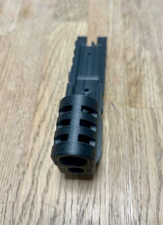 Silenciador para Airsoft de la marca GG CORP, modelo S1. - Diseño en color negro. - Construcción PLA con 15% de CARBONO.
