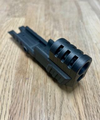 Accesorio táctico para airsoft, diseñado para mejorar la experiencia de juego. - Fabricado en material resistente. - Diseño con ranuras para ventilación. - Compatible con rieles estándar. - Material PL CF ( 15% CARBONO ).