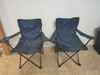 Conjunto de dos sillas plegables, perfectas para camping o actividades al aire libre. Son fáciles de montar y desmontar. Precio por las dos - Estructura de metal. - Asiento y respaldo de poliéster.
