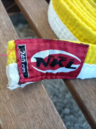 2 cinturones de judo con dos colores, blanco y amarillo, ideal para la práctica de este deporte. - Tejido resistente. - Diseño bicolor.