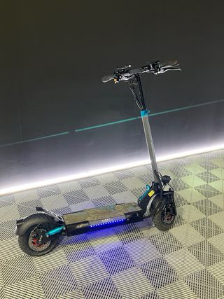 Vendo este patinete eléctrico de alta gama, ideal para desplazamientos rápidos y cómodos por la ciudad. Está en muy buen estado y funciona perfectamente. Incluye luces delanteras potentes y sistema de iluminación LED inferior en color azul, que le da un estilo único y mejora la visibilidad nocturna. - Luces LED azules decorativas en la base. - Pata de soporte incluida - Ruedas antipinchazos y anchas con excelente agarre. - Manillar ajustable en altura. - Frenos de disco. - Sistema de doble suspensión para mayor comodid Perfecto para uso diario, trayectos al trabajo, estudios o simplemente paseos. Se entrega probado y funcionando.