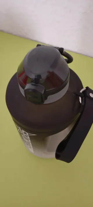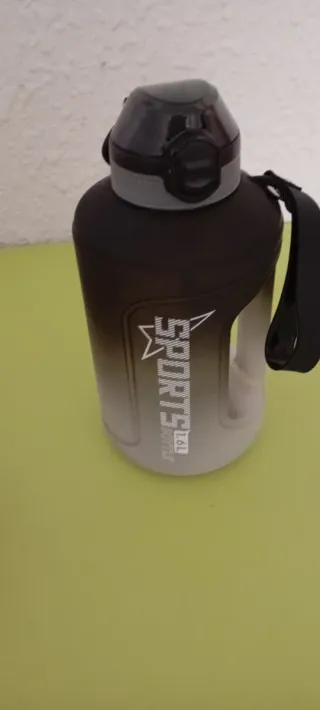 Botella de agua con diseño deportivo y capacidad de 1.6 litros. - Color degradado de negro a blanco. - Asa para facilitar su transporte. - Tapa con cierre seguro. entrego en mano en mí localidad no me desplazo o envío por wallapop