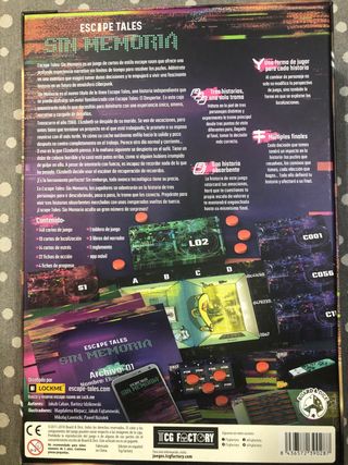Juego de mesa Escape Tales: Sin Memoria. - Juego narrativo de tipo escape room. TCG Factory. Tags: bitoku, clank, ark nova, el ansla, imhotep, cascadla, dixtt, parks, concorala, Catan, orleans, the island, everdell, trajano, bora bora, mombasa, meeple land, catedral roja, war chest, le havre, cubitos, patchwork, osopark, aventureros al tren, esplendor, jalpur, Magic, Tikal, luxor, Coimbra, paleo, calico, sagrada, azul, sushi go, Alhambra, raiz, reclamo, latón, sl