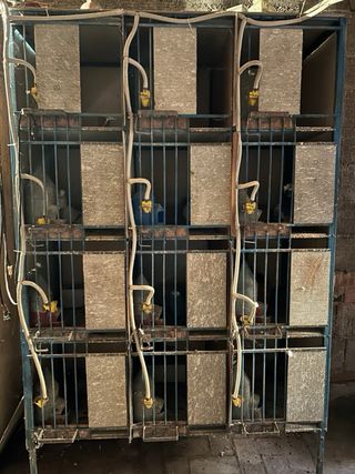Jaula para palomos con capacidad para 12 aves. - Estructura metálica resistente. - Bandejas extraíbles para facilitar la limpieza. - Bebederos automáticos incluidos.