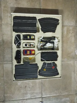 Circuito de carreras de La Razón, compatible con Scalextric. Incluye coches y accesorios para montar tu propia pista. - Caja original con diseño de carreras. - Incluye dos coches de competición. - Bandera de cuadros y elementos decorativos.