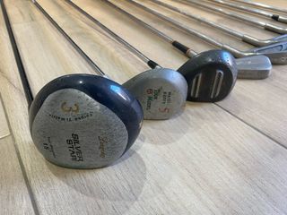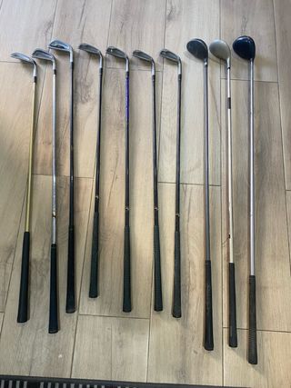 Pack de palos de golf. - Incluye varios palos de diferentes tipos. - Mangos con agarre. - Varillas metálicas.