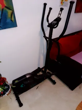 Se vende conjunto de máquinas de gimnasio para entrenar en casa. - Máquina elíptica plateada. - Máquina de abdominales con asiento y soportes. - Incluye rodillo de abdominales, soportes para flexiones y esterilla acolchada y combatir profesional TODO A ESTRENAR. También se vende individualmente