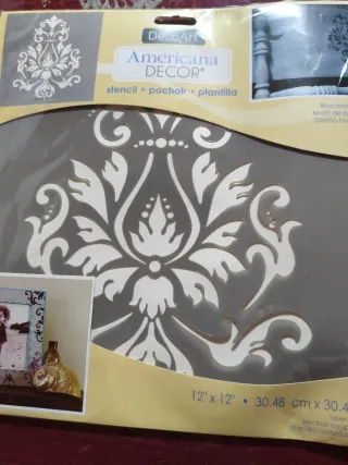 Plantilla de la marca Americana Decor con diseño damasco. - Medidas: 12 x 12 (30.48 cm x 30.48 cm). - Ideal para proyectos de decoración. - Corte láser.