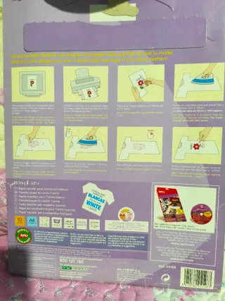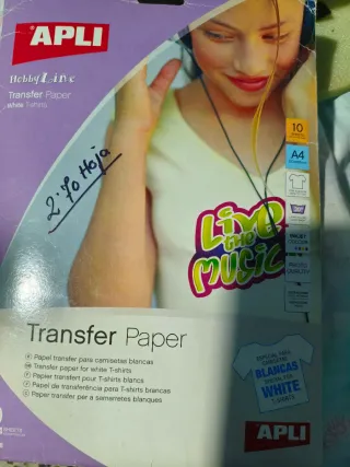 Lote de 19 hojas de papel transfer Apli para camisetas blancas. - Marca: Apli - Modelo: Hobby Line - Formato: A4 - Tipo: Transfer Paper para camisetas blancas
