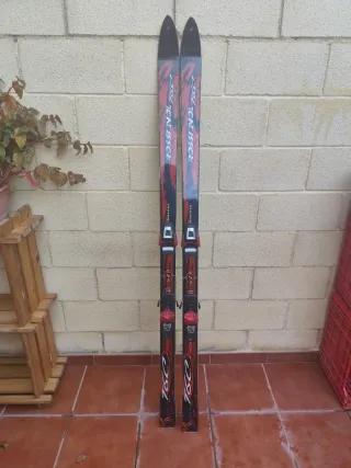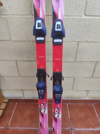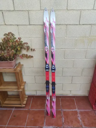 Se venden esquís Rossignol de 195 cm. - Diseño con detalles en rosa y blanco. - Fijaciones de esquí incluidas.