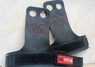 Par de calleras Picsil en talla S. Diseñadas para ofrecer un agarre seguro y proteger tus manos durante el entrenamiento. - Material resistente. - Cierre de velcro ajustable. - Logo de la marca en relieve.