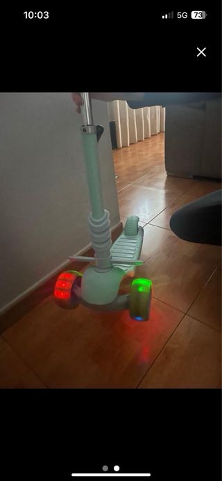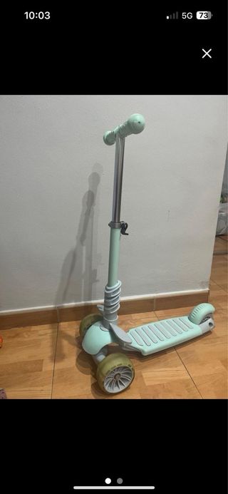 Patinete infantil de tres ruedas en color menta. Ideal para los más pequeños. - Manillar ajustable en altura. - Ruedas delanteras con luces. - Plataforma antideslizante.