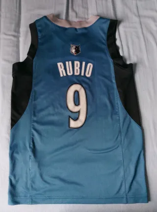 Camiseta NBA Ricky Rubio Minnesota Timberwolves. Talla de niño 10-12 años. Excelente estado salvo un pequeño agujero junto al 9 en la parte trasera (ver quinta foto)