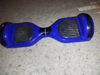 Hoverboard de color azul brillante, con plataformas antideslizantes negras. - Diseño moderno y deportivo. - Ruedas con detalles negros. (Precio negociable)
