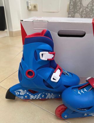 Patines en línea de color gris y turquesa, diseñados para niños. Cuentan con un sistema de cierre seguro y ruedas resistentes. - Diseño moderno en gris y turquesa. - Cierre de cordones y velcro. - Ruedas alineadas para mayor estabilidad.
