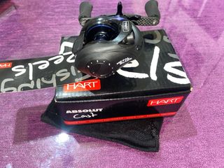 Carrete de casting HART ABSOLUT CAST en color negro. Diseñado para la pesca. - Modelo: ABSOLUT CAST - Marca: HART - Color: Negro - Acabado: Metal Black -Ratio 5.1:1 -Rodamientos 7+1 pesca lucio black bass