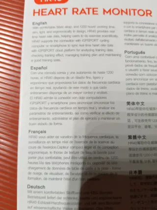 Monitor de frecuencia cardíaca iGPSPORT HR40, diseñado para llevar en el pecho. - Conectividad ANT+ y Bluetooth. - Sumergible IPX7. - Autonomía de 1200 horas.
