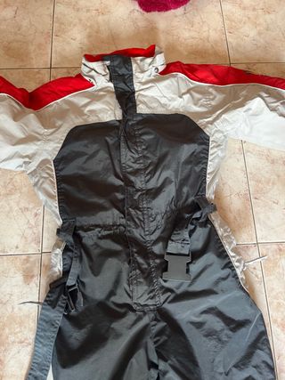 Chaquetón de ski con una sola puesta. Como nuevo. Pelo de la capucha desmontable (con cremallera) muy abrigado. En perfecto estado. Se incluye pantalón de ski blanco con algún signo de uso (sin rotos). Talla 10 años