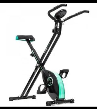 Bicicleta estática Cecotec X-Bike, compacta una vez plegada para guardar. - Estructura de acero robusta y compacta. - Asiento cómodo y ajustable. - Manillar ergonómico. - Pedales con correas de sujeción. - Diseño en negro con detalles en verde y negro. - Pantalla LCD que muestra: tiempo, velocidad, distancia y Calorías.
