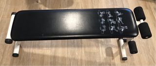 Banco para ejercicios de abdominales y entrenamiento. - Tapizado negro. - Estructura blanca. - Incluye rodillos de espuma para mayor comodidad.