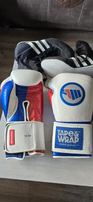 Guantes T&W como nuevos, usados 5 meses sin apenas desgaste, 16-0Z perfecto para entrenamientos y sparring, cierre belcro. Casco de barra Charlie original como nuevo usado 10-15 veces, cierres ajustables de cordon y belcro, barra protectora de nariz. Botas de boxeo adidas usas bastante pero perfectamente utilizable. Vendaje 3,5 m buena calidad. Todo junto nuevo vale 240 € Bolsas de guantes incluida. Vendo todo por separado también, hago envíos.