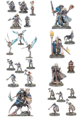 Parte stormcast de la caja Mareaskaven. Se incluye también 4 fascículos de la colección Stormbringer. 1 Lord Vigilante en Grifoscechante 1 Lord Terminus 1 Lord Inquisidor + 1 perro 1 Caballero Hidalgo 3 Inculparor 3 Recluyentes 3 Rememoradores 10 Liberadores 1 Caballero ajusticiador + 2 perros 3 Pretores 5 Vindicadores 1 Gardus alma de acero