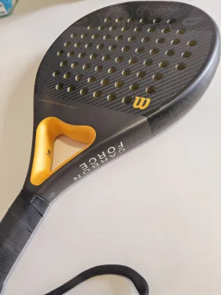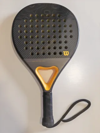 Pala de pádel Wilson Carbon Force Pro (Golden) - Diseño en color negro y detalles en dorado. - Superficie con patrón de carbono. - Incluye correa de seguridad en el puño. Tendrá un par de partidos.