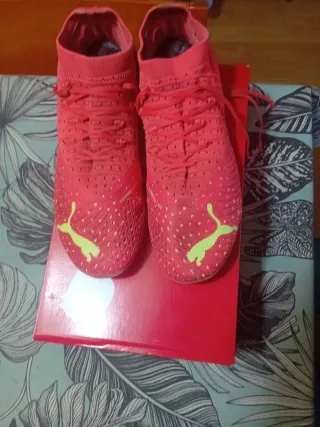 Botas de fútbol Puma en color rojo y amarillo. Diseñadas para ofrecer un buen rendimiento en el campo. - Modelo Puma Future. - Talla 41 - Cierre con cordones. - Logo Puma en los laterales.