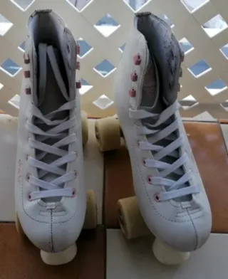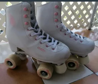 Patines blancos de la marca Oxelo en talla 38. Perfectos para iniciarse en el patinaje. - Diseño clásico y cómodo. - Cordones blancos. - Detalles en color rosa. Poco uso