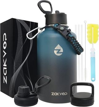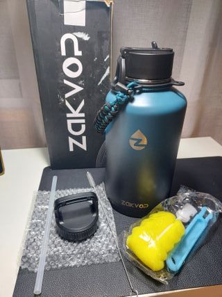 Botella térmica ZAKVOP de 2 litros NUEVA. Fabricada en acero inoxidable con aislamiento de DOBLE PARED Mantiene bebidas frías hasta 48h y calientes hasta 24h. Incluye: • 3 tapas diferentes • 2 pajitas reutilizables • cepillo de limpieza • asa paracord con brújula • caja original Ideal para gimnasio, deporte, trabajo, camping o excursiones. Precio nuevo 30-35€. botella termica botella acero inoxidable botella 2l botella agua gimnasio botella termica grande botella deportiva botella acero botella camping botella senderismo