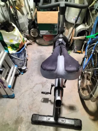 Bicicleta de entrenamiento estática para ejercicio en casa. Su diseño permite una sesión de cardio efectiva. - Sillín acolchado para mayor comodidad. - Pedales con agarre. - Base estable para el uso.