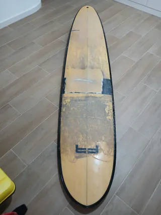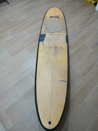 Tabla de surf de 9 pies, ideal para disfrutar de las olas. - Diseño clásico. - Color amarillo con detalles en negro. - Logo de la marca visible.