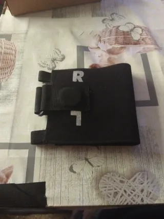 Rodillera de compresión para alivio de ciática. Diseñada para ofrecer soporte y comodidad. - Color negro. - Cierre ajustable con velcro. - Incluye marca 'R' y 'L' para indicar pierna derecha e izquierda.