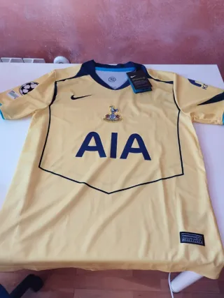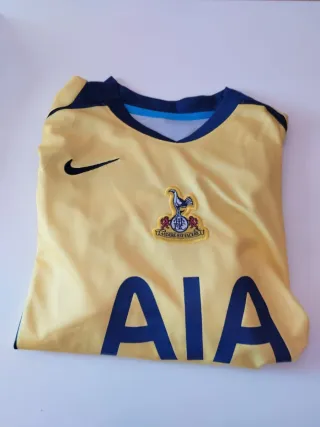 Tercera equipación de fútbol del Tottenham Hotspur. - Color amarillo con detalles en azul marino. - Logo de Nike bordado. - Escudo del club en el pecho. - Patrocinador AIA en grande.
