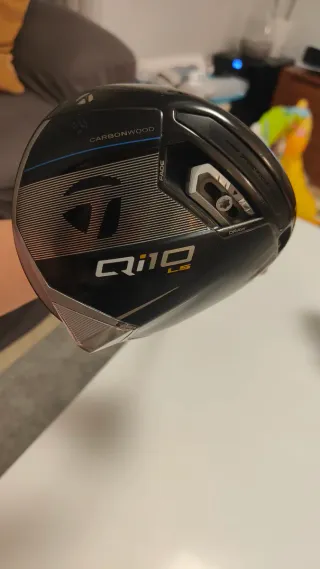 Driver de golf TaylorMade Qi10 LS con tecnología Carbonwood. - Diseño elegante en negro con detalles en azul y plateado. - Inscripción Qi10 LS en la cara. - Ajuste de peso para Fade y Draw. - Con funda de protección incluido #drive #golf #Qi10 #draw