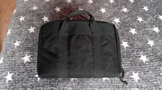 Maleta negra para airsoft con un diseño moderno y funcional. Ideal para transportar tu equipo. Marca YAKEDA. - Compartimento principal espacioso para 2 pistolas - Bolsillo para 5 cargadores. - Bolsillo para documentos u otros. - Asa de transporte reforzada. - Medidas aprox. 32*22*13