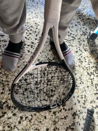 Raqueta de tenis Head Speed JR25. - Diseño en color blanco con detalles en cobre. - Inscripción SPEED en negro. - Modelo JR25 en etiqueta negra.