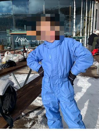 Mono de nieve infantil de color azul, talla 8, ideal para mantener a los más pequeños abrigados y secos en la nieve. - Diseño de una sola pieza. - Capucha integrada. - Cremallera frontal. - Puños y tobillos elásticos.