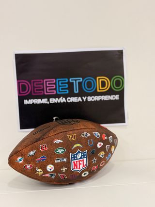 Balón de fútbol americano con múltiples logos de la NFL. - Diseño con escudos de equipos de la NFL. - Marca Wilson.