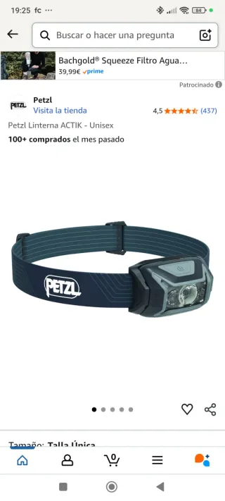 Linterna frontal Petzl Actik con 450 lúmenes de potencia máxima. - Tecnología Hybrid Concept. - Tres modos de iluminación: proximidad, desplazamiento y visión de lejos. - Correa de cabeza ajustable y lavable.