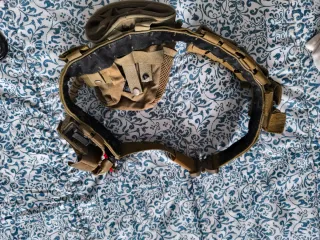 Cinturón táctico de primera línea para airsoft, con sistema Molle. - Color coyote. - Incluye porta cargador y porta granadas. - Cierre de hebilla. - Ajustable.
