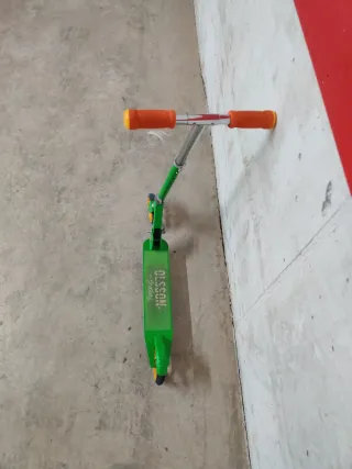 Patinete de la marca Olsson para niños. Esta usado y se vende con su caja. Es unn patinete plegable con ruedas 145mm para los riders que busquen buenas sensaciones en una gama media. Fácil de guardar y listo en unos segundos para disfrutar del asfalto! Tabla fabricada 100% en aluminio reforzado, soportando un peso máximo de 100kg (peso del patinete: 2,85kg!!). Medidas base: 100x480x2.8mm. Estructura PLEGABLE para fácil transporte. Composición: 50% aluminio y 50% acero para máxima resistencia y durabilidad. Manillar regulable en altura de 33cm de ancho con puños de foam para mejorar el agarre. Altura máxima del manillar: 87cm