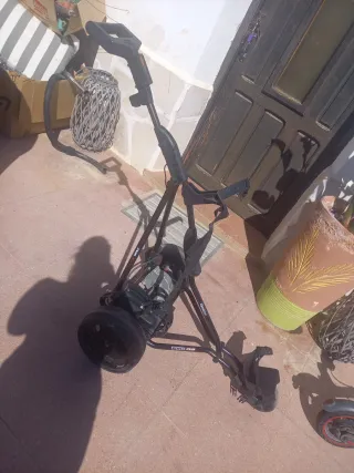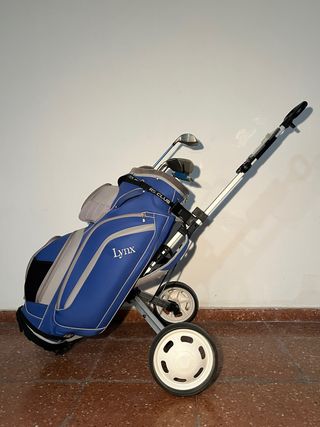 Diseñado para ser plegable y facilitar transporte. Se vende por falta de uso. -Ruedas perfecto estado y estructura estable. -Interior perfecto. -Bolsa protección de palos ajustable al carrito. Se vende solo el carrito (los palos de las fotos no están incluidos, puedes encontrarlos en otros anuncios de mi página). Entrega en mano o envío.