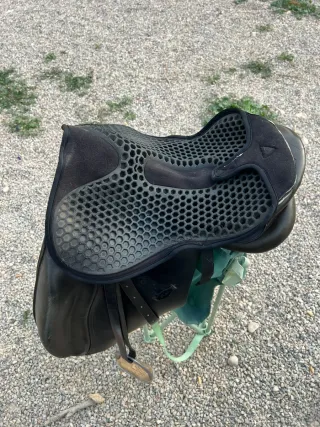 Lote de productos de equitación que incluye: -Montura Inglesa de la marca Wicmoel Paris -Cabezada Inglesa con filete -Sudadero silla Inglesa PVC negro -Cojin de gel para asiento marca Acavallo También se vende por separado, pregunta precio sin compromiso