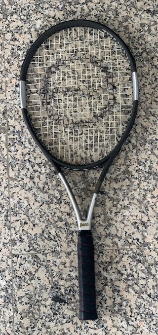 Raqueta de tenis vintage de los años 90. Un clásico para coleccionistas o para revivir el juego. - Marco de carbono. - Diseño retro.